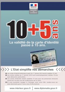 Depuis le 1er janvier 2014, les cartes nationales d’identité sont valables 15 ans pour les personnes majeures. Les cartes délivrées entre le 2 janvier 2004 et le 31 décembre 2013 sont automatiquement valides 15 ans sans démarche à accomplir.