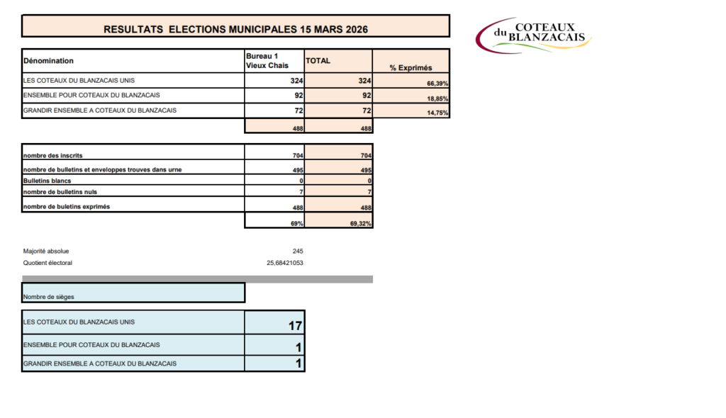 Résultats élection Municipale 15 mars 2026
